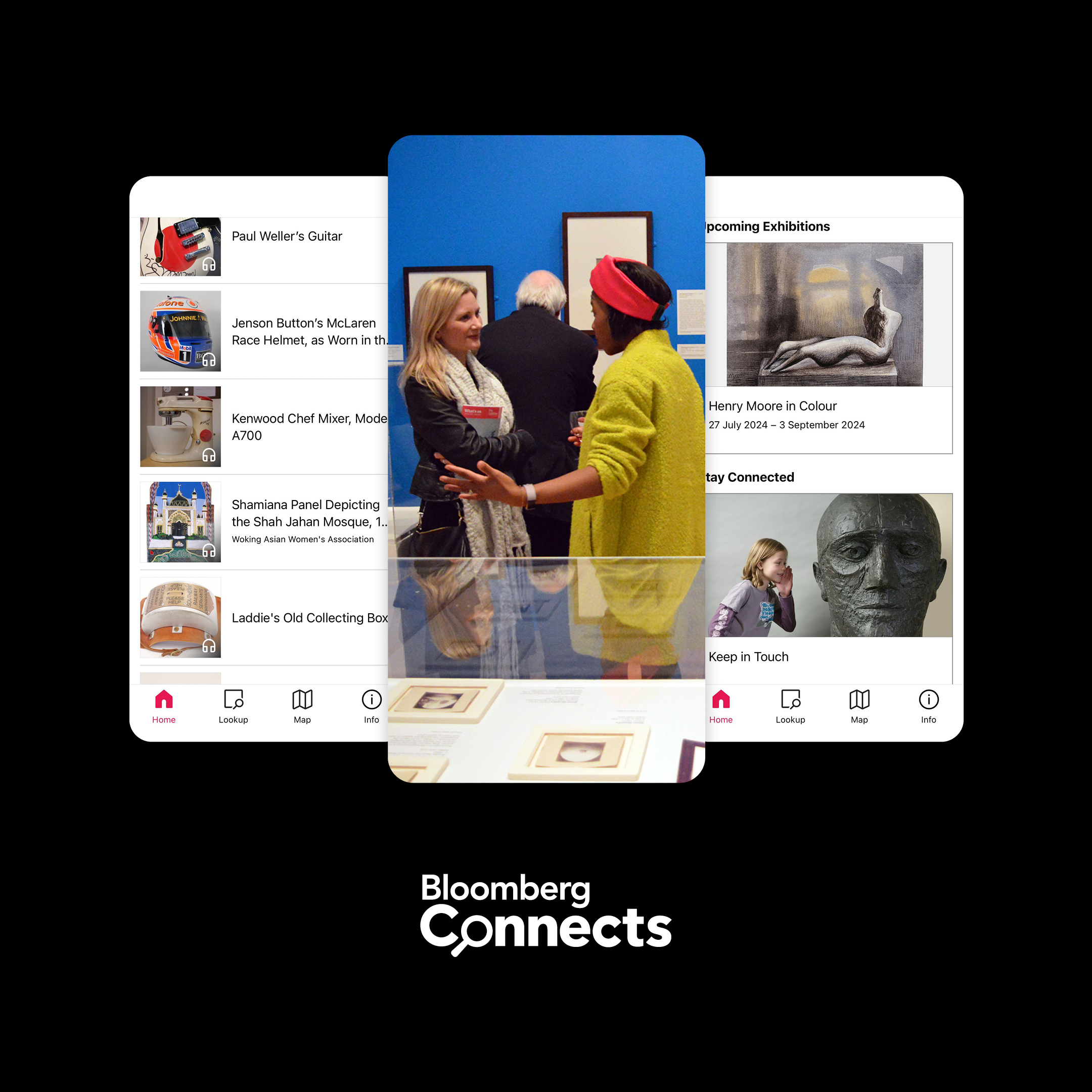 Lightbox Gallery & Museum is on Bloomberg Connects, a free arts and culture app that allows you to explore digital exhibition guides and museum objects. It is packed with behind-the-scenes information about our exhibitions, featuring audio and visual content, transcripts, and font and image size adjustment to accommodate a range of accessibility needs.